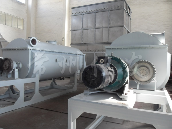 槳葉式干燥器分為熱風式和傳熱式。熱風式即通過熱載體(如熱空氣)與被干燥有物料相互接觸并進行干燥,在傳導(dǎo)式中熱載體并不與被干燥的物料直接接觸,而是熱表面與物料相互接觸。傳導(dǎo)式的優(yōu)點是物料不易被污染,排氣量小,熱效率高,體積相對小,有利于節(jié)約能源及防止空氣污染。